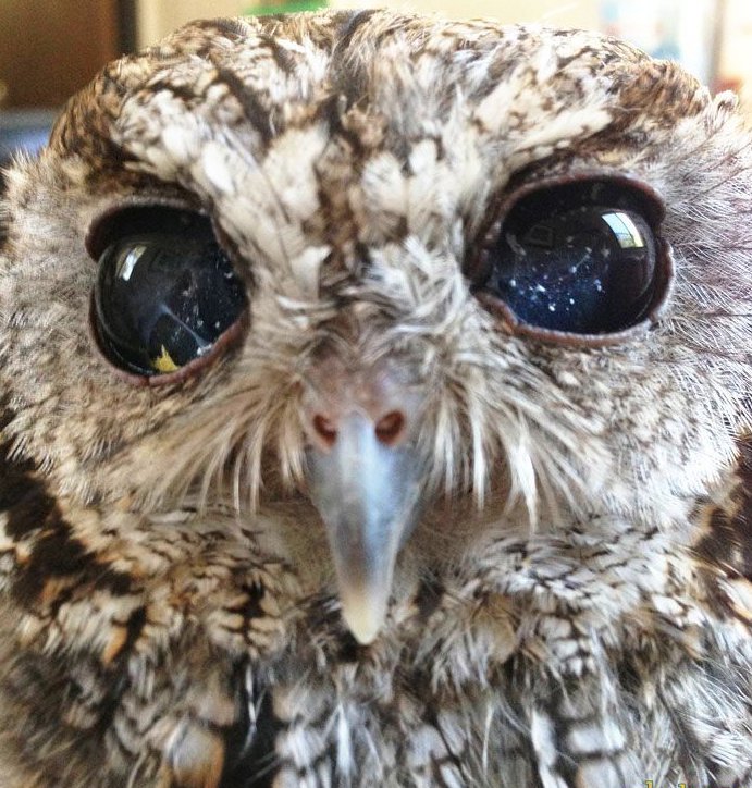 После посещения ветеринара сова нашла постоянный дом в Учебном центре дикой природы (Wildlife Learning Center) в городе Сильмар, штат Калифорния. За свои прекрасные глаза сова была названа величественным именем «Зевс» в честь греческого бога неба и грома. Из-за того что птица является слепой сотрудники центра не могли выпустить её на свободу и оставили жить у себя.