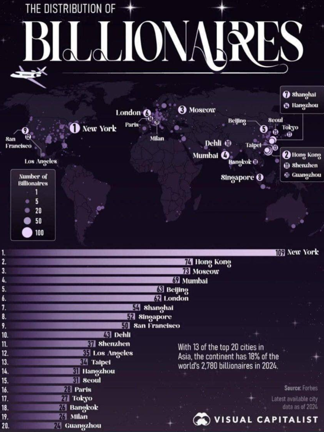 Москва вошла в тройку мировых лидеров по количеству долларовых миллиардеров и продолжает удерживать позиции в глобальном рейтинге. По последним данным, в столице насчитывается 73 жителя с состоянием свыше миллиарда долларов. Впереди остаются только Нью-Йорк и Гонконг. Эксперты отмечают, что концентрация капитала в крупнейших мегаполисах остаётся устойчивым трендом, хотя у аудитории такие новости вызывают самые разные эмоции — от гордости до иронии.