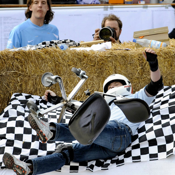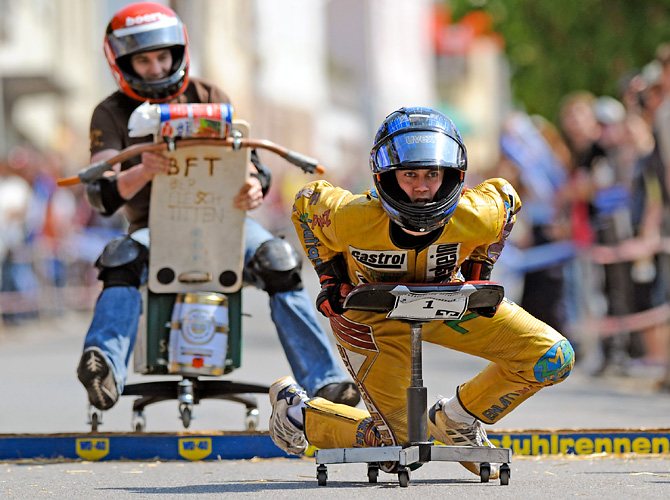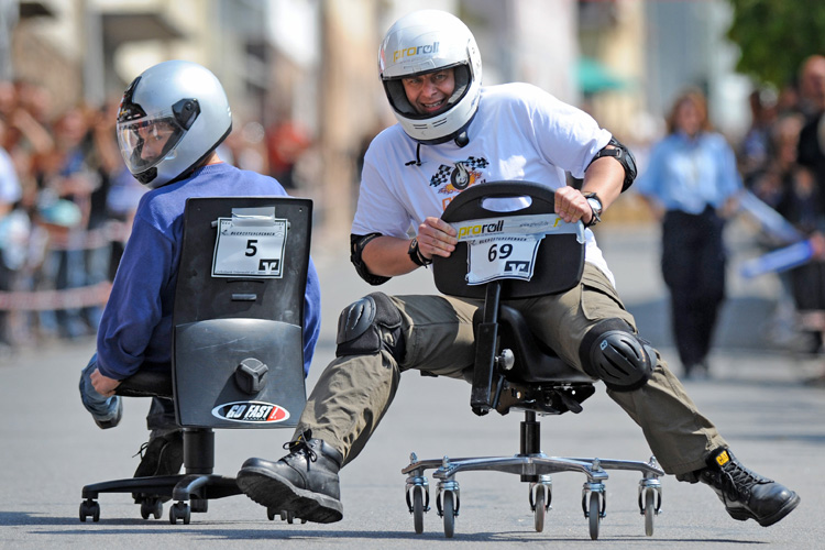 Заезд на креслах(7 фото) 28/04/2009 19:21 В Германии прошел чемпионат по езде на офисных креслах "German Office Chair Racing Championship". Зрелище захватывающие, с учетом того что стулья всячески переделывали и трасса была с рампами и прочими виражами. Главная / Статьи 0 Admin 7 1 548