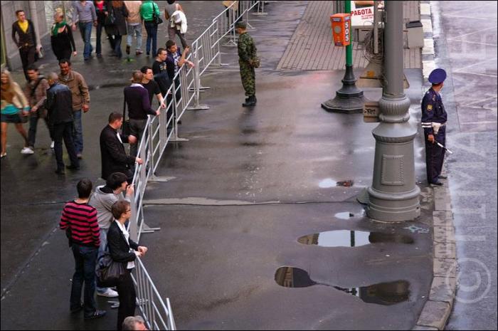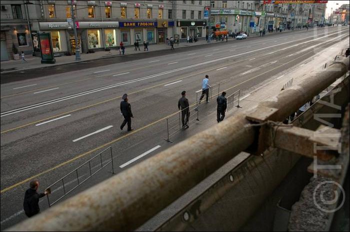 Тем временем фуражки расставляют свои ограждения и всячески суетятся.