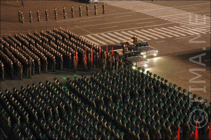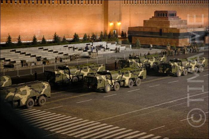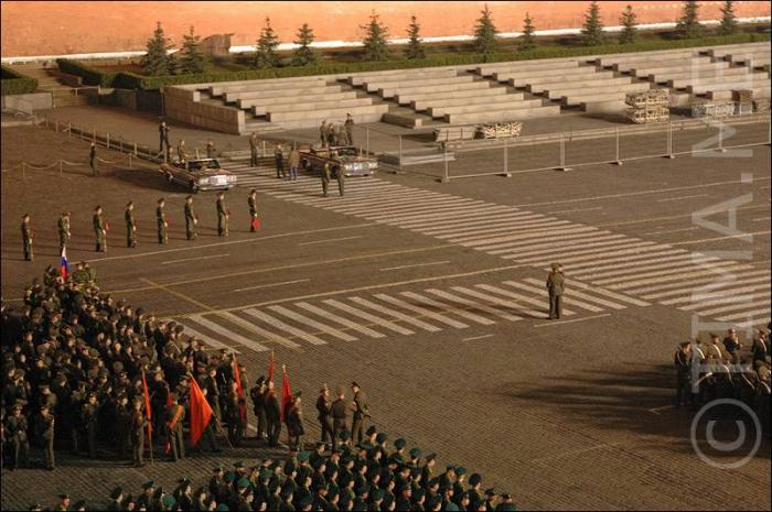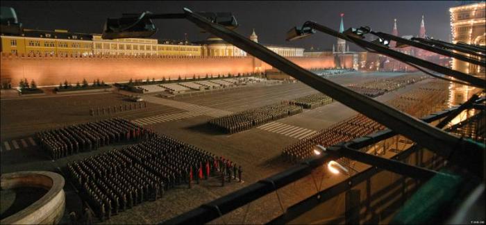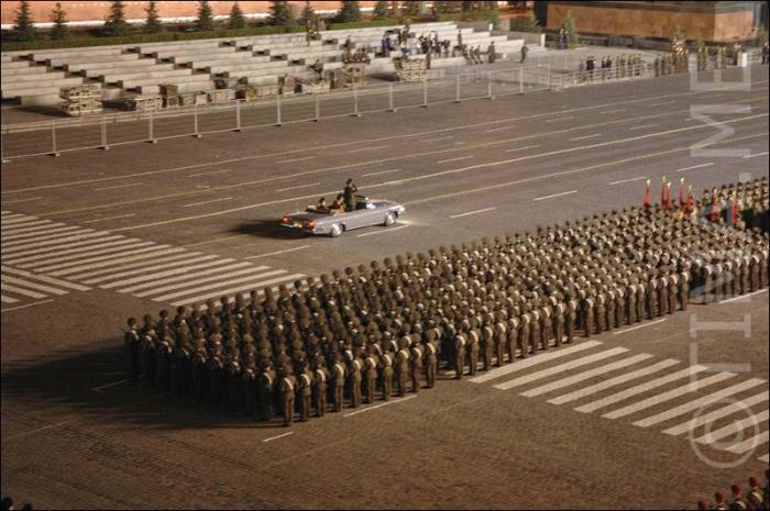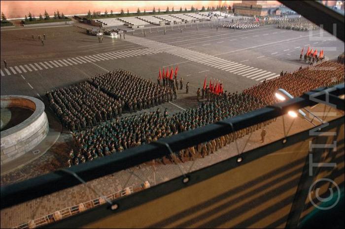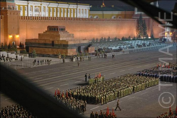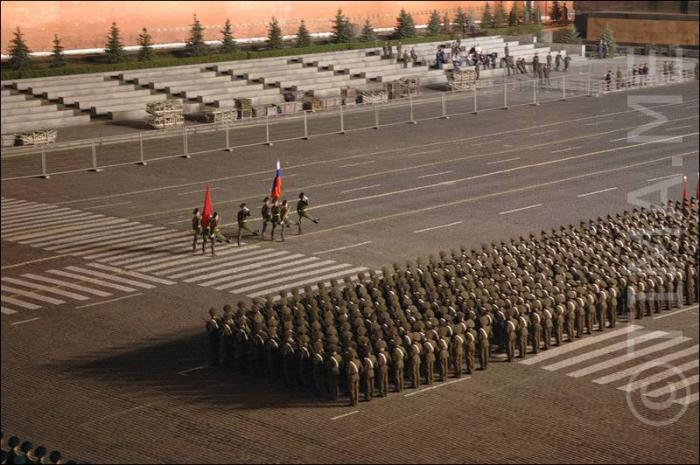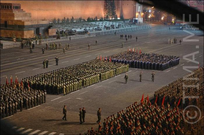 Колонны людей на красной площади.