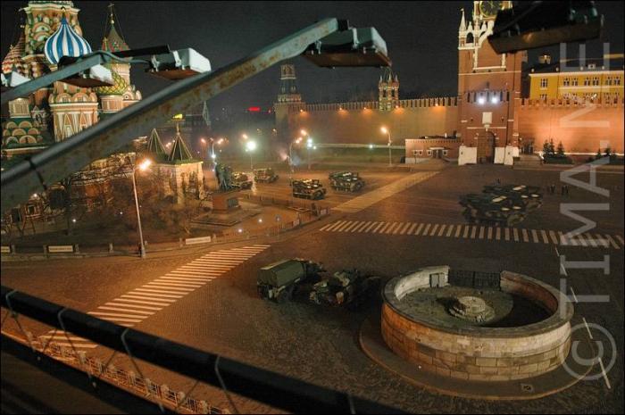 У гостиницы к тому времени уже совсем стемнело. Часть колонны уже прошла, часть машин встала. Подождав минут двадцать, я встретил нескольких друзей, что само по себе не очень удивительно и мы отправились к Красной площади. На ней по началу особо ничего и не было. Оба выхода были перегорожены вояками и толпой людей. Поразмыслив, мы все же решили применить свои некоторые познания и умения и в итоге оказались в очень интересном и красивом месте.