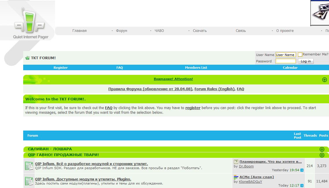 Сегодня, в ночь с четверга на пятницу 8 мая 2009, около 2х часов ночи (МСК) был взломан сайт альтернативного ICQ клиента для обмена моментальными сообщениями QIP. Как сообщают очевидцы, хакерами была взломана административная панель сайта, в результате чего был получен административный доступ со всеми правами. Титульная страница сайта подверглась дефейсу, в результате которого было размещено послание следующего содержания: "Не спать, админы!!! Враг тоже не спит! Быстро меняйте все пароли! Пользователи, квипы отсюда не качать!!! Могут быть протроянены!" На всякий случай поменяйте пароль от своего ICQ номера через официальную страницу и не пользуйтесь данным клиентом до выхода официальных объяснений от администрации.
