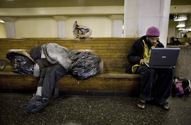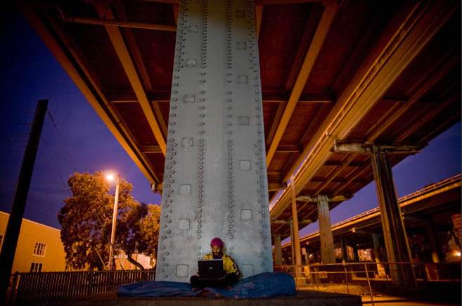 В разных штатах существуют целые сообщества бомжей-интернетчиков, а городские власти организуют для них благотворительные лагеря, где они могут починить ноутбуки, получить высокоскоростной интернет, пройти обучение на компьютерных курсах, изучить онлайновые вакансии на бирже труда.