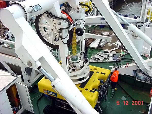 Кабель поднимают при помощи кранов, лебедок и блоков. Это может показаться самой обычной операцией, но это не так. Судно прибывает в приблизительную точку повреждения по координатам, полученным со спутника. Затем выпускает так называемый мягкий крюк и зацепляется за кабель, путем протягивания по дну. Потом вниз опускается режущий крюк, пока корабль идет вдоль кабеля, его острые лезвия разрезают его, так как дефектный кабель нельзя поднять без разреза. После разреза судно перемещается, чтобы снова зацепить за одну сторону разрезанного кабеля и поднять его на борт. Подняв кабель, его закрепляют и проводят тестирование, чтобы убедится в исправности от места поломки. Конец кабеля запечатывают и крепят к бую, чтобы легче найти, и выбрасывают за борт. Другую сторону кабеля сматывают и проверяют, пока не будет найдено само повреждение. В момент проведения каждой операции, судно автоматически подруливается, оставаясь на месте в нужной точке, благодаря системе навигации, установленной на судне. Управление производится со спутника, используя систему динамического позиционирования (GPS). Это единая система датчиков и рулевых устройств корая гейко, обеспечивающие судну сохранять устойчивость во время волнения и двигаться в заданном направлении. Все это контролируется компьютером. На борту есть и робот ?Atlas-1?. Это машина с удаленным управлением. Он способен двигаться на гусеничном ходу по морскому дну, отыскивать и откапывать кабель, а затем посылать на борт изображение высокого разрешения для обработки полученных данных. Робот ?Atlas-1? оснащен набором инструментов, различных камер и фонарей ? это ?глаза? пилота на морском дне. Его скорость под водой 4 км/ч.