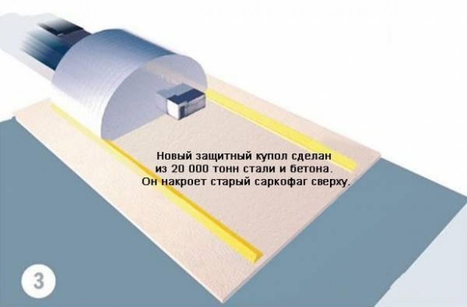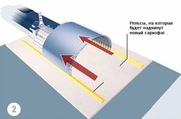 Стальной ?гроб?, который похоронит опасное облучение еще на 100-200 лет, планируется установить к 2012 году. Проект спасительной крыши демонстрирует, что она будет надвинута над четвертым блоком на рельсах и останется подвижной для того, чтобы в будущем блок все-таки можно было демонтировать.