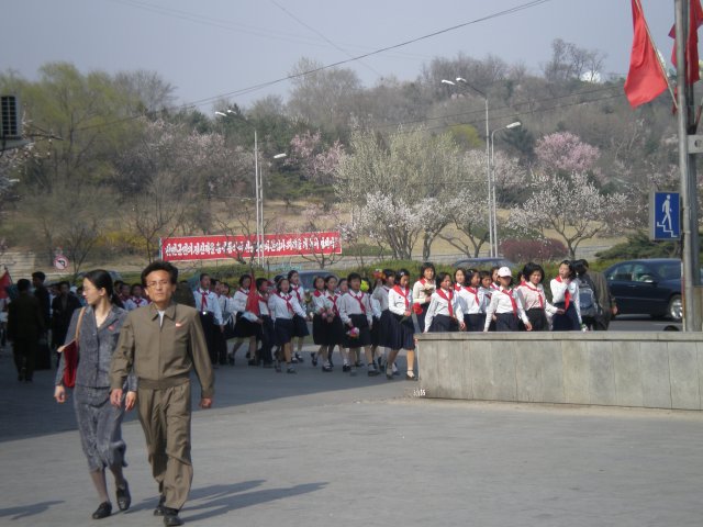 Это пионерский отряд, то есть, там есть пионеры, комсомольцы, а сейчас существует Союз молодежи Ким Ир Сена, и пионерская организация. Все, как в нашем старом времени, единственное отличие это то, что люди, прошедшие школу пионерской и комсомольской организации, быстрее продвигаются по карьерной лестнице, их быстрее назначают на должности, и функционеры являются одними из движущих элементов общества Северной Кореи.