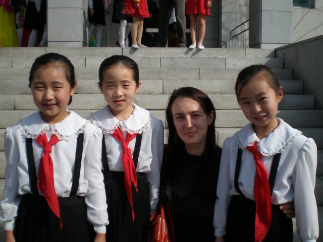 Мы попали на одно такое собрание случайно, нас быстренько отправили. Это ? репетиция ариана. Есть акробатические мероприятия, которые проводятся к годовщинам, к круглым датам в истории Кореи, в истории создания партии, дня рождения Ким Ир Сена и другие праздники, когда люди своими телами выкладывают буквы, целые предложения, картинки и прочее. Очень красиво все выглядит.