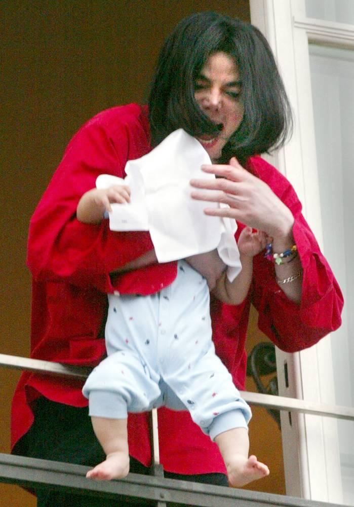 Джексон держит своего сына Принца Майкла II накрытого полотенцем, стоя на балконе берлинской гостиницы 19 ноября 2002 года. Впоследствии Джексон назвал произошедшее ?ужасной ошибкой?, однако эта фотография потрясла даже самых преданных фанатов певца. Его репутации был нанесен необратимый урон. (Tobias Schwarz/Reuters)