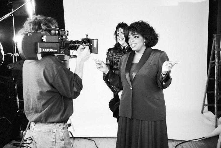 Майкл Джексон и Опра Уинфри на съемках в январе 1993 года. В этом году Джексона впервые обвинили в сексуальных домогательствам к несовершеннолетним, и в полуторачасовом шоу Опры он обратился к потерпевшим. Впоследствии обвинения с Джексона были сняты, но по имеющимся сведениям он выплатил 25 млн $, чтобы уладить это дело. (Neal Preston/Corbis)