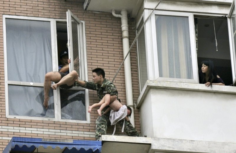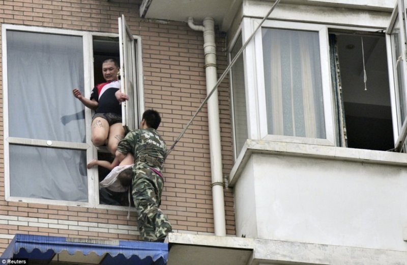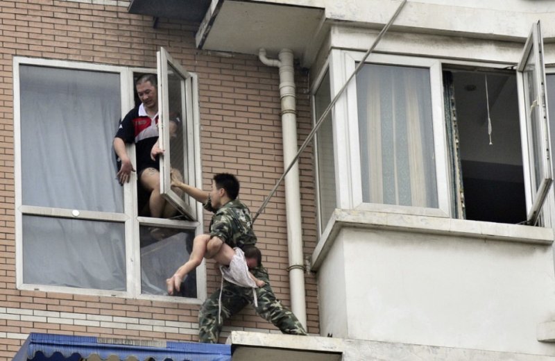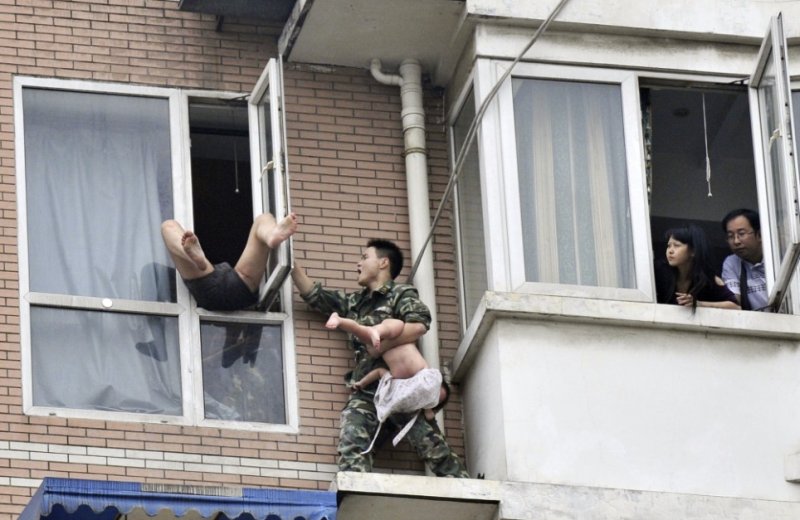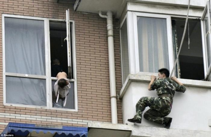 Вчера в китайском Ченду работник местной спасательной службы проявил свои профессиональные навыки в самом лучшем виде. Просто какой-то китайский Дядя Степа, право слово. Один из местных наркоманов решил свести счеты с жизнью, но перед тем как выброситься с восьмого этажа, решил отправить в окно свою двухлетнюю дочь. Спасатель подобрался к окну и смог не только вырвать девочку из рук безумца, но и не дал ему погибнуть самому.
