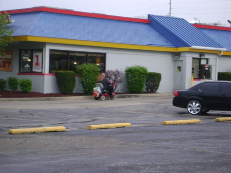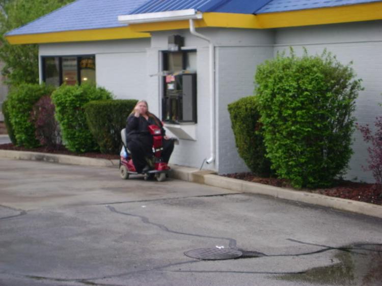 Если говорить честно, то меня шокировали эти фотографии. Человек, который страдает от лишнего веса, при это видно, что передвигается он на специальном устройстве (наверно сложно ходить самому) - все равно едет и покупает фастфуд. Может быть я не прав, не знаю...