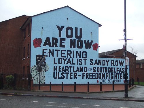 Протестантская молодежь рабочего класса регулярно совершает организованные нападения на дома с целями "этнической зачистки" меньшинств. Иногда чужаков убивают на улицах, по которым ходят группы молодежи из лоялистских полувоенных образований, доступ к оружию тут не проблема. Здесь в воздухе висит память и запах тысяч убитых людей во время столкновений католиков и протестантов.
