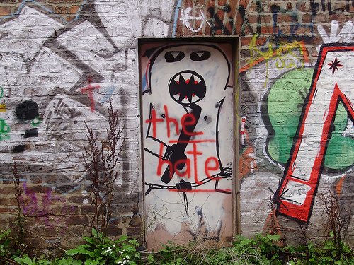 Так называемые стены мира между протестантскими и католическими сообществами изрисованы свастиками, это знак, что в этих районах правит принцип "keep the streets white" -"держим улицы белыми".