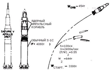 В дальнейшем, как уже упоминалось, было решено запускать ?Орион? с помощью одной или двух ракет ?Сатурн-5? для того, чтобы исключить загрязнение атмосферы радиоактивными отходами.