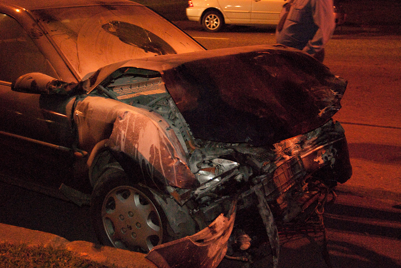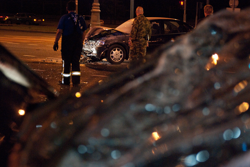 Три бухих охломона на "опель вектра B" , нажравшись в парке Горького, решили поехать в область, попутно пролетев под красный перекрёстка вернадскогоуниверситетский по встречной полосе. И на полной скорости ударили в бок СсанЙонг Рекстон в котором ехала семья с маленьким ребёнком. Джип сделал уши. Только благодаря счастливой случайности они отделались лёгкими травмами, машина под списание, весь удар ушёл в высокое днище и раму. ВДВшник бывший за рулём начал буянить, его пристегнули наручниками к столбу, двое его пассажиров, продолжали орать "Слава ВДВ!" на фоне перевёрнутой машины.