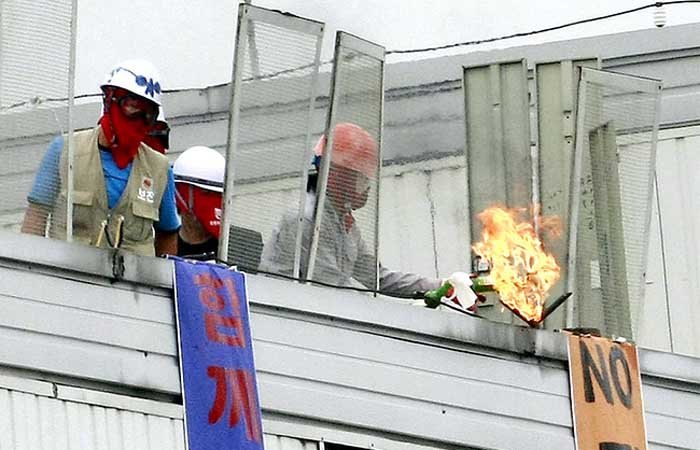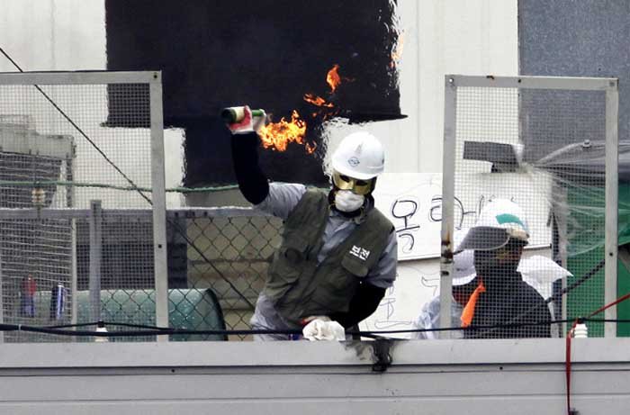 По стандартам российской армии ? это больше, чем полк. Это основная тактическая единица, бригада. Уволенные корейцы не смирились. 21 мая они захватили завод в Пьонгтеке, недалеко от Сеула.