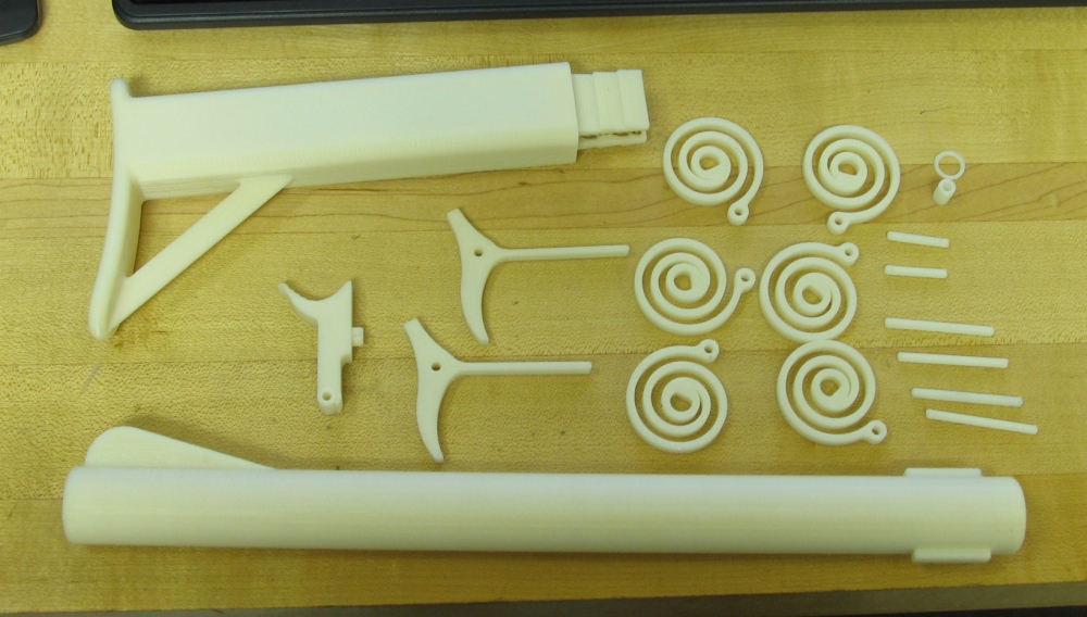 Как и у «Освободителя», в этой винтовке все детали распечатаны на 3D-принтере, кроме металлического бойка. Более того, в ней используются такие же пружины, как у «Освободителя», так что пистолет и винтовка частично совместимы по комплектующим. Первый экземпляр даже печатали на таком же принтере Stratasys Dimension.
