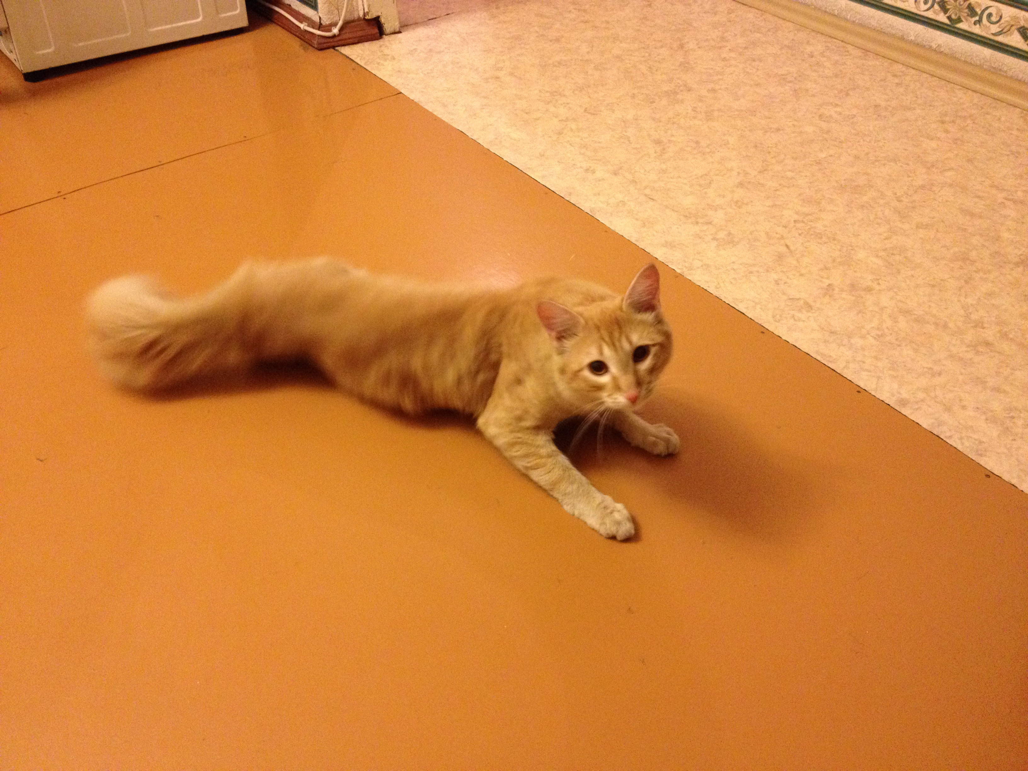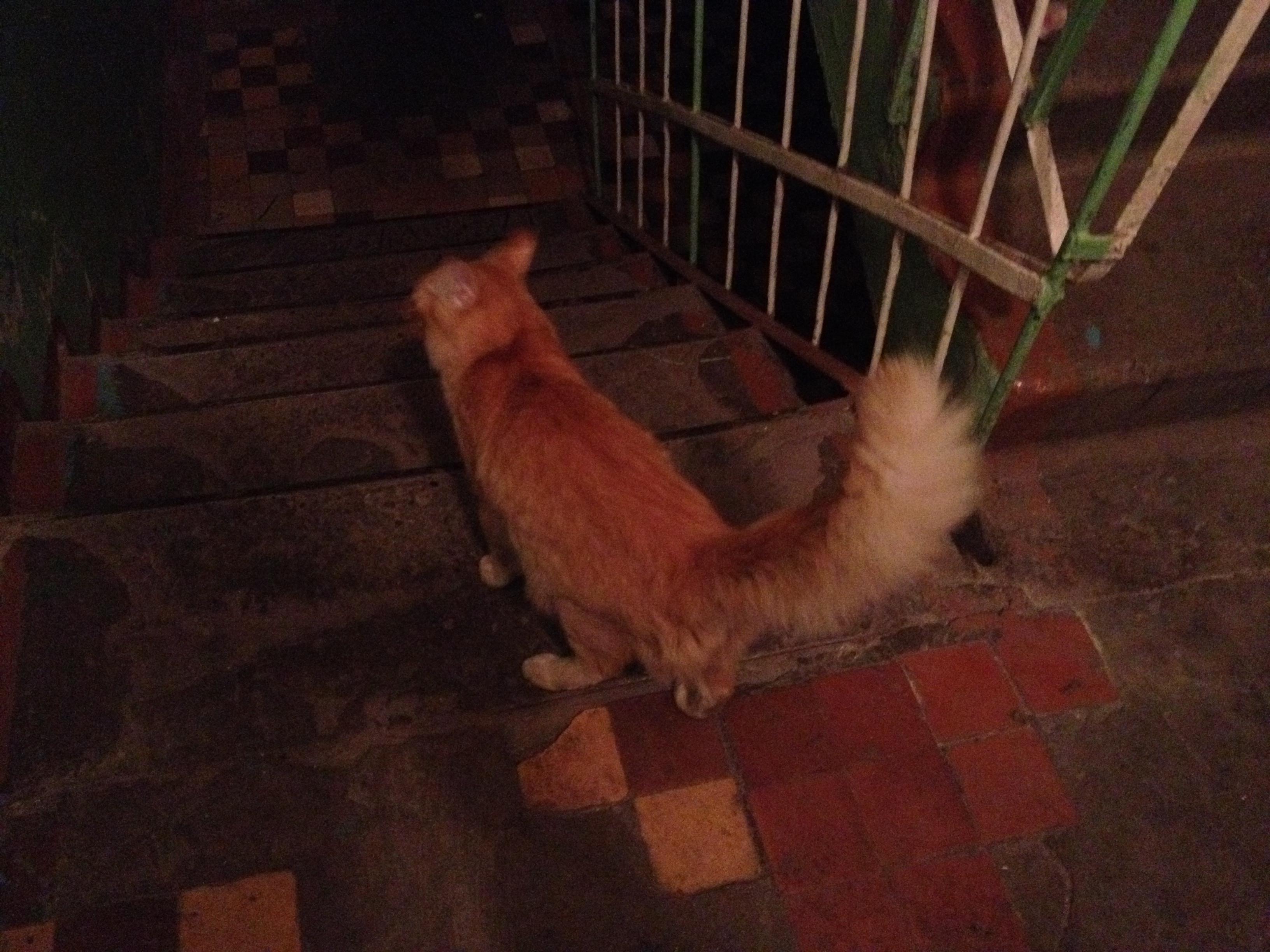 Кот домашний, приученный к туалету, ухоженный и ласковый. Поселился у меня в подъезде, видимо сбежал из дому и прибился где потеплее.