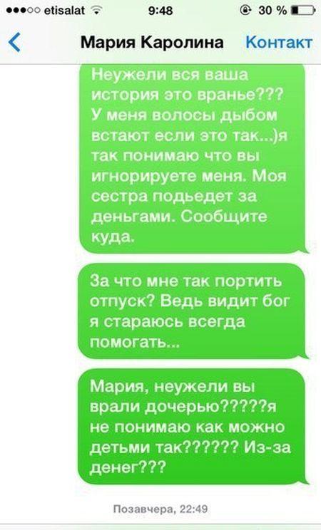 И оказалось что никакого ребенка нет. Теперь по факту мошенничества проводится проверка Управлением по борьбе с экономическими преступлениями. Какие выводы можно сделать из этой истории? Что помогать надо. Но лучше всё же или перепроверять информацию, или помогать через специальные фонды. А кормить сволочей, которые наживаются на чужом горе, ни в коем случае нельзя.