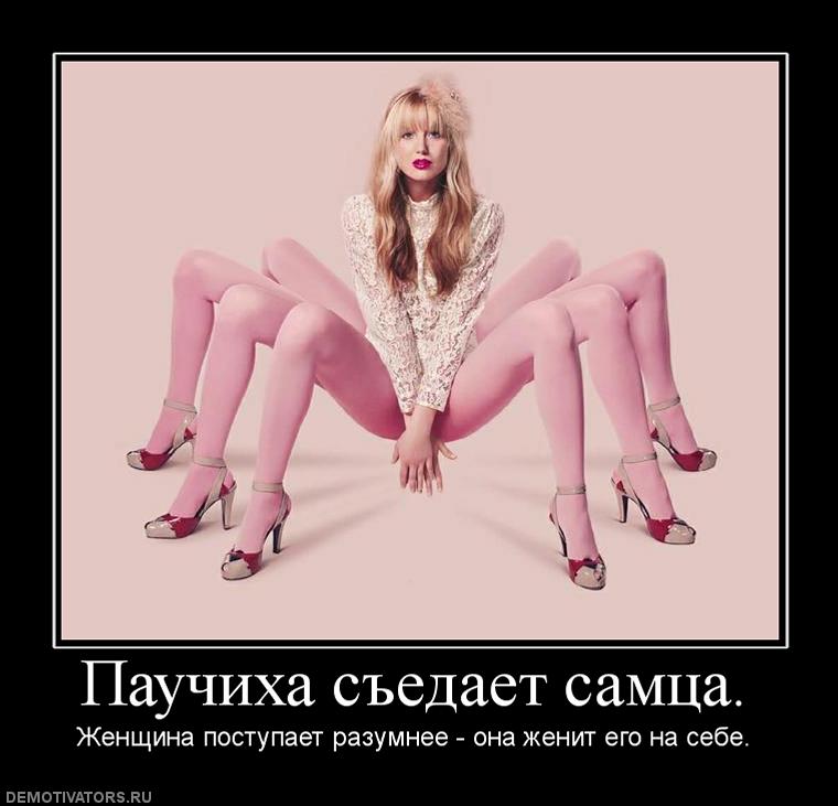 В милиции 32-летнюю задержанную Валерию К. окрестили Паучихой, поскольку девушка коллекционирует пауков и является поклонницей триллеров. Она заманивала мужчин в свою обитель, поила горячительным напитком с сильнодействующим препаратом, а затем воплощала в жизнь свои жуткие сексуальные фантазии, сообщает один из новостных каналов. Лишь сутки спустя обманутые мужчины понимали, как ими воспользовались.