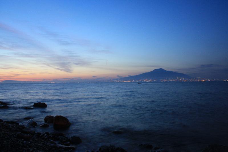 Вид с пляжа на ночной Неаполь и Везувий