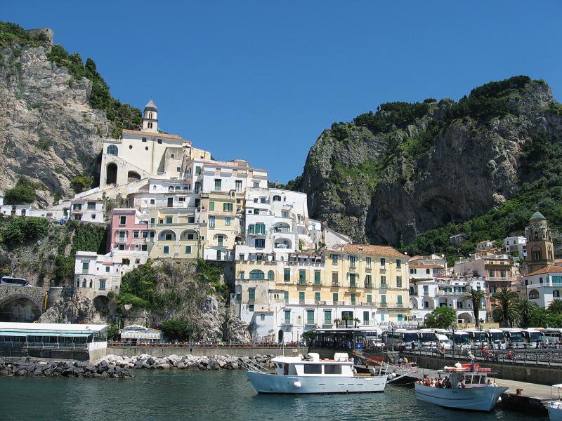 Амальфи в Италии – это и небольшой город, и целое курортное побережье, которое известно благодаря своей неповторимой ауре средневековья, висящим на прибрежных склонах крохотным городкам и изумительной природе Средиземноморья. Общая протяженность побережья Амальфи – порядка 50 километров, и эти пятьдесят километров – одни из самых живописных в Италии, со спрятанными в скалах пляжами, с многочисленными гротами, арками и бухточками.
