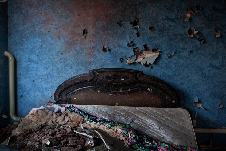 Пулевые отверстия над кроватью в доме, где в ходе спецоперации были убиты 4 боевика: