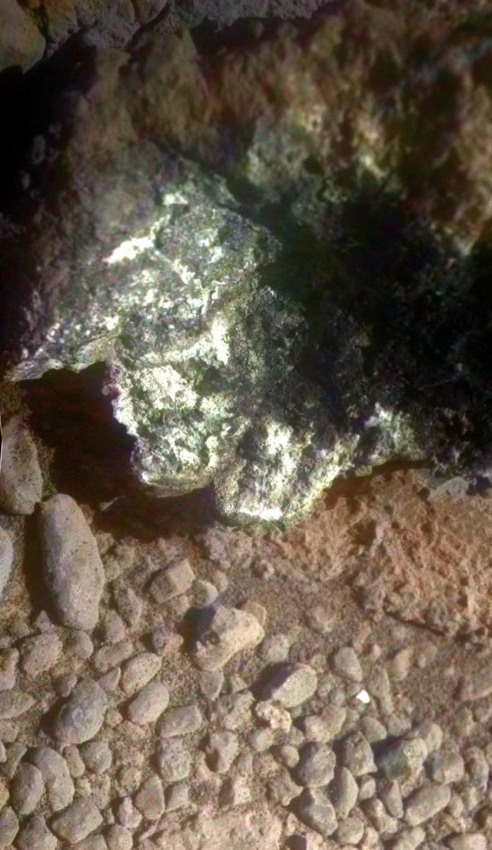 Другая загадка - внутренний цвет этого камня. Помимо белых фрагментов, у него наблюдаются и очень темные участки, почти черные, как... уголь. Для образования угля требуется растительность, что крайне маловероятно на Марсе, зато угольно черный цвет характерен для т.н. "углистых метеоритов". Для таких метеоритов характерно высокое содержание углерода, и, в том числе, углеводородов, которые с таким усердием сейчас ищет Curiosity, в другом полушарии Марса.