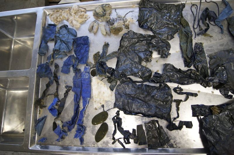 Это содержимое желудка Антона. Куски рюкзака, пластик, тряпки. Всё это бросали милые посетители в вольер Антона, а он это ел. Потому и умер.