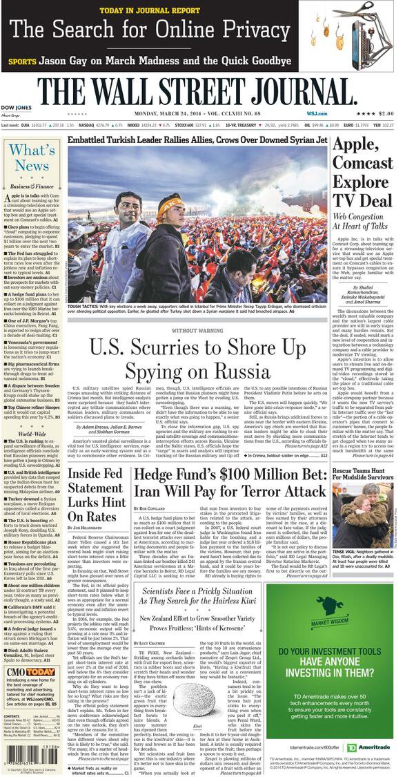 После окончания «холодной войны» американские военные спутники были сосредоточены в основном над странами Ближнего Востока, чем над России. Но, судя по информации The Wall Street Journal, американская разведка возвращается к положению 30-летней давности.
