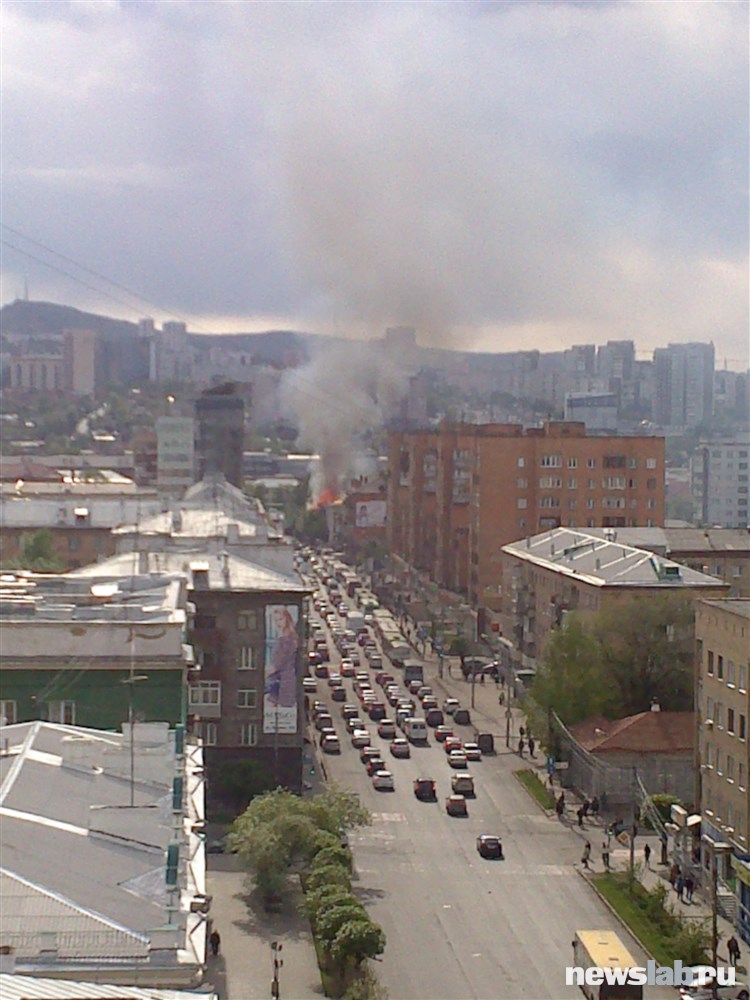 Пожарные ищут людей в охваченном огнем доме на ул. Ленина в Красноярске