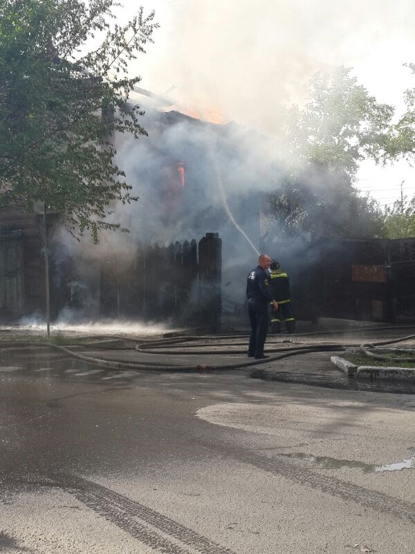 Как рассказывают очевидцы, двухэтажное деревянное здание по адресу ул. Ленина, 154, полностью охвачено огнем. Внутри могут находиться люди, и пожарные сейчас пытаются найти кого-либо в горящем здании.