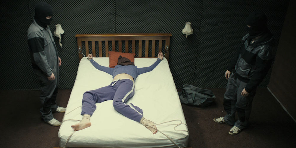 Героиню актрисы Джеммы Артертон («Охотники на ведьм», 2013) похищают и удерживают в плену двое мужчин в масках. Всё действие фильма практически не выходит за пределы одной квартиры. У режиссёра картины Джея Блейксона получилось превратить фильм с бюджетом чуть менее одного миллиона долларов в качественную и тонкую психологическую игру.
