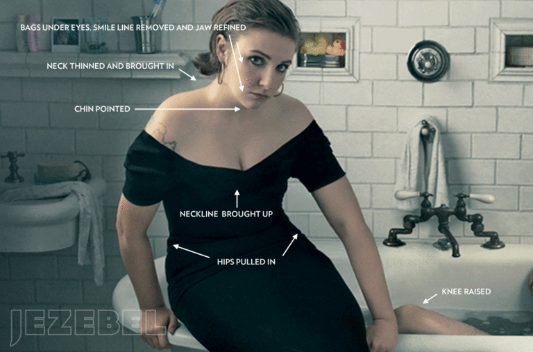 Будь то модели, актрисы, певицы или обычные люди, уже сама возможность добиться идеала заставляет к этому идеалу идти напролом тропой фильтра liquify, масок и инструментов clone и patch. Многие помнят знаменитую сцену из фильма September Issue, где Анна Винтур просит сделать фотографию попавшего в кадр модной съемки оператора, реального человека, далекого от мира моды, более стройным. Лена Данэм может ходить толстой, плохо одетой и прыщавой на канале HBO, и мы будем ее любить за пугающие, но знакомые нам несовершенства, но в съемке внутри Vogue она будет соответствовать принятым стандартам. И только оригинальные кадры съемки, попавшие в сеть, позволили оценить огромный объем работы и то, насколько стандарты журнала далеки от реальности.