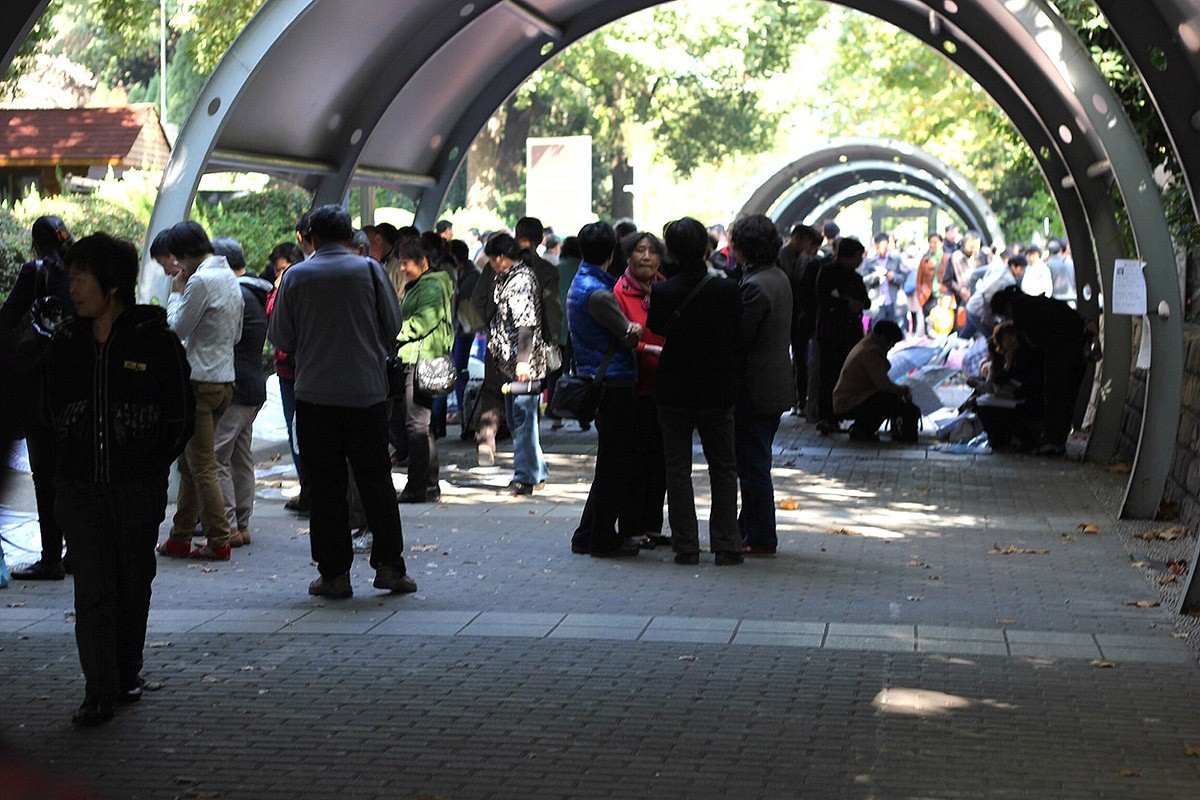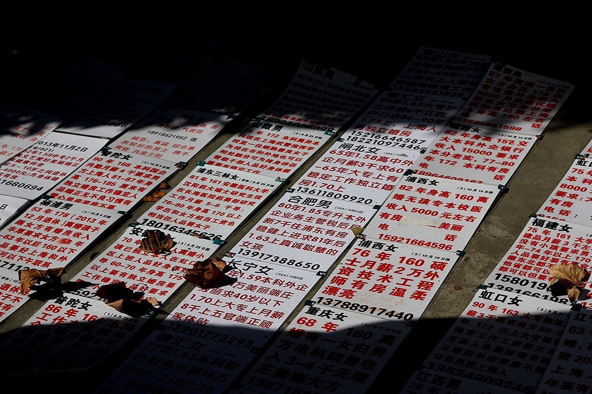 Рынок женихов и невест представляет собой место встречи пожилых женщин и мужчин, сидящих на маленьких стульчиках и трепетно оберегающих расстеленные перед ними полотна бумаги с информацией о своем сокровище.
