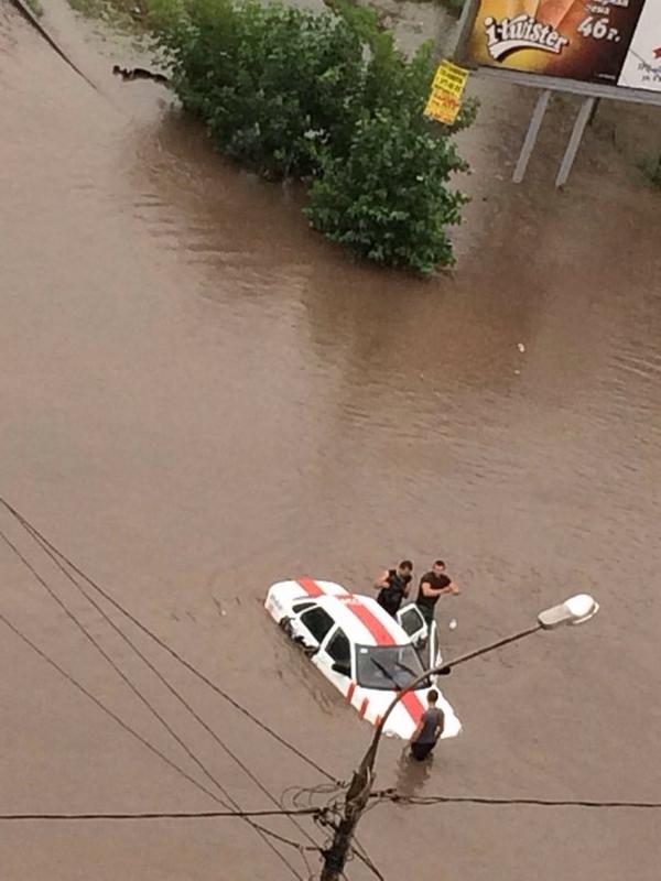 «В городе все очень плохо. Затоплено все, что могло затопить. На Брянскую с гор смыло грунт, камни и мусор, местами для проезда осталась одна полоса. Профсоюзов под Копыловским мостом перекрыта. Гидроудары получают машины всех классов».