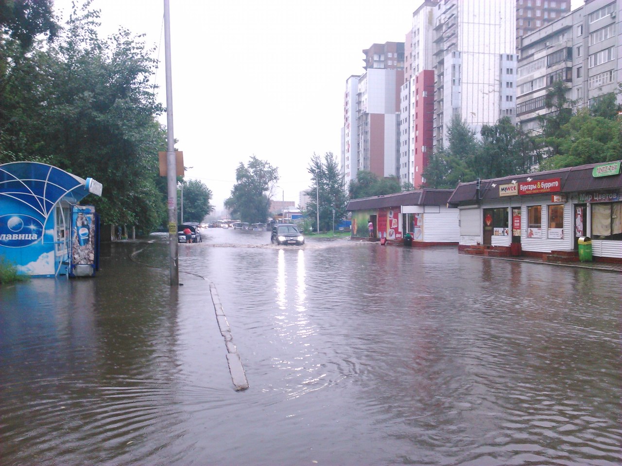 Стихия в Красноярске разбушевалась не на шутку. Дождь стоит стеной, и, похоже, зарядил надолго. И это вперемешку с сильным ветром. Красноярцы уже выкладывают в Интернет фото красноярского «потопа». Уже поплыла «Европа», «Планета», центр и правый берег. И все это вперемешку с сильным ветром. На улице Гладкова повалило дерево, на Республике в одном из домов погас свет.