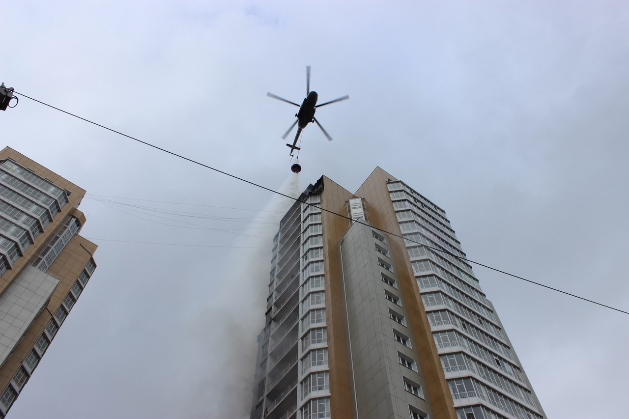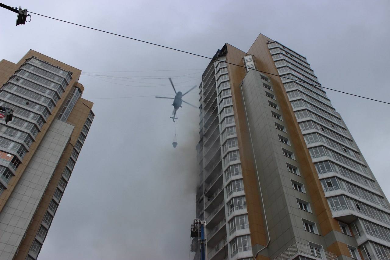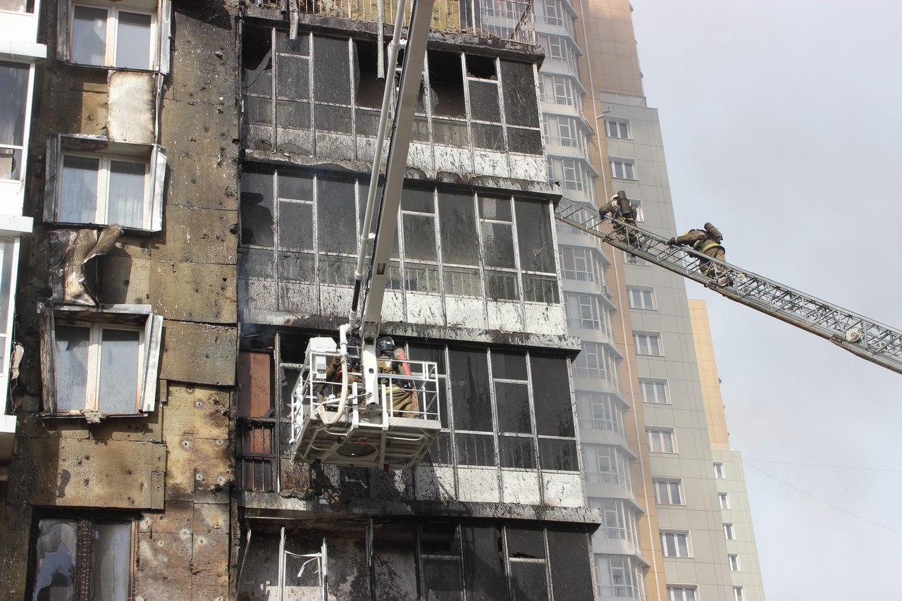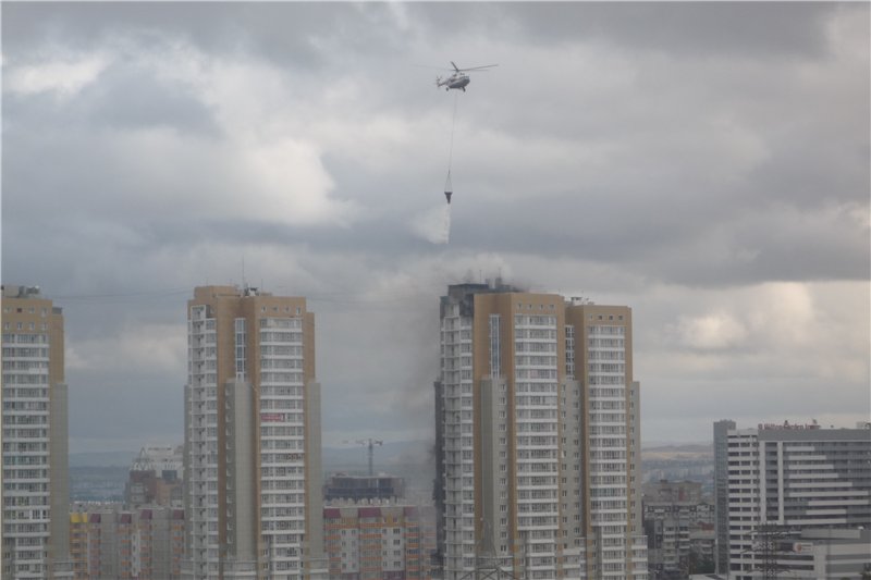 В настоящее время спасатели и пожарные работают на месте происшествия. всего задействовано 19 автоцистерн, 3 автолестницы. На момент прибытия пожарных огнем была охвачена восточная часть здания с первого по последний этажи, огонь перекинулся на припаркованные во дворе автомобили. Точных данных о пострадавших пока нет.
