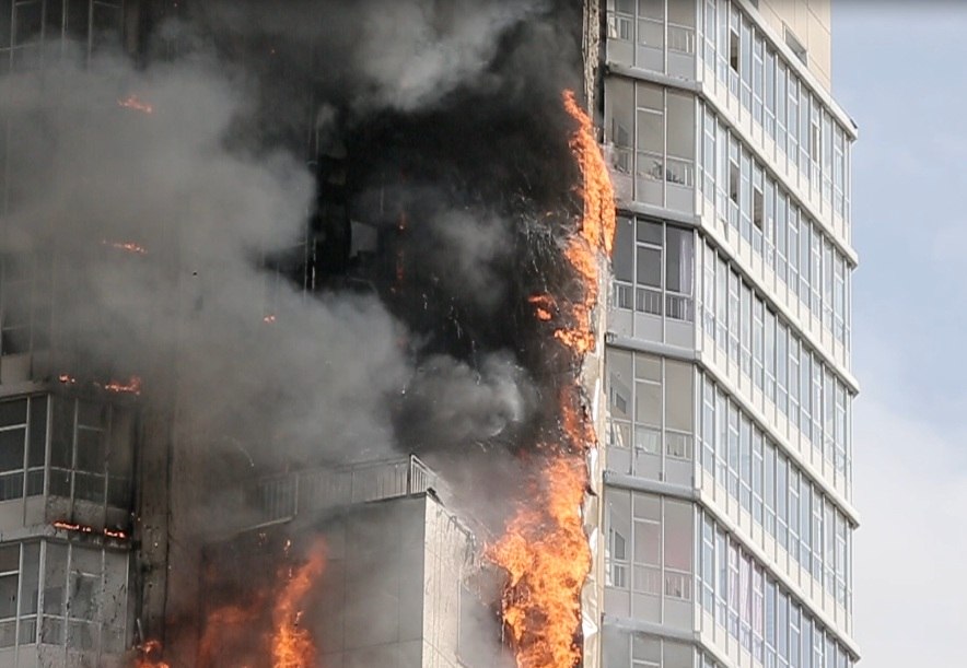 По свидетельствам очевидцев, пламя охватило здание от первого этажа до последнего. Во многих частях города был виден черный дым от пожара.