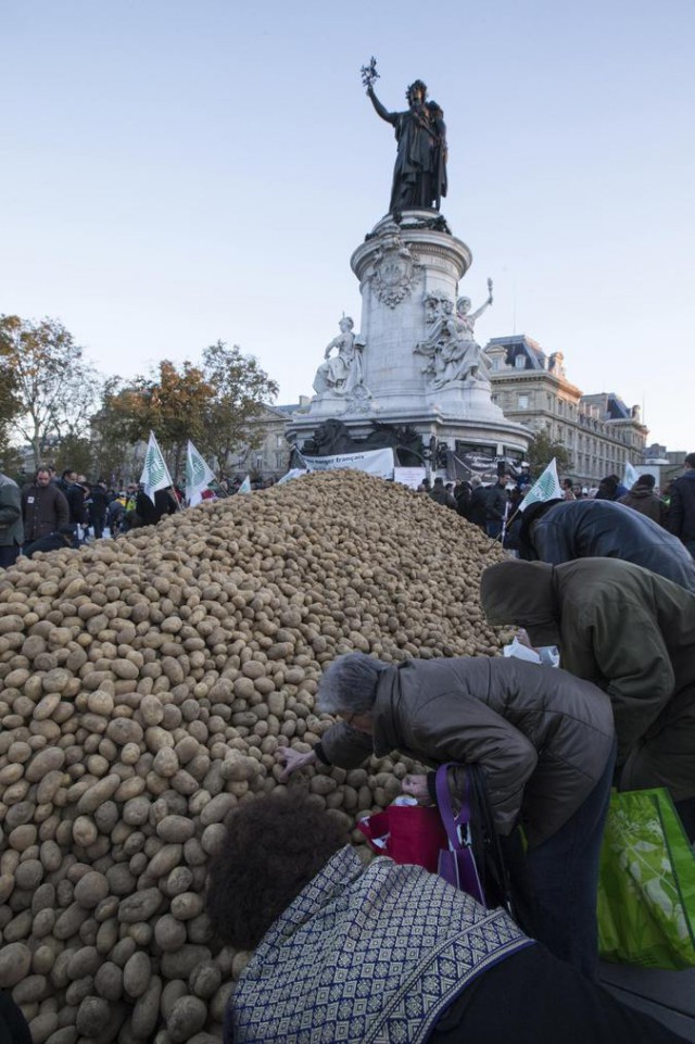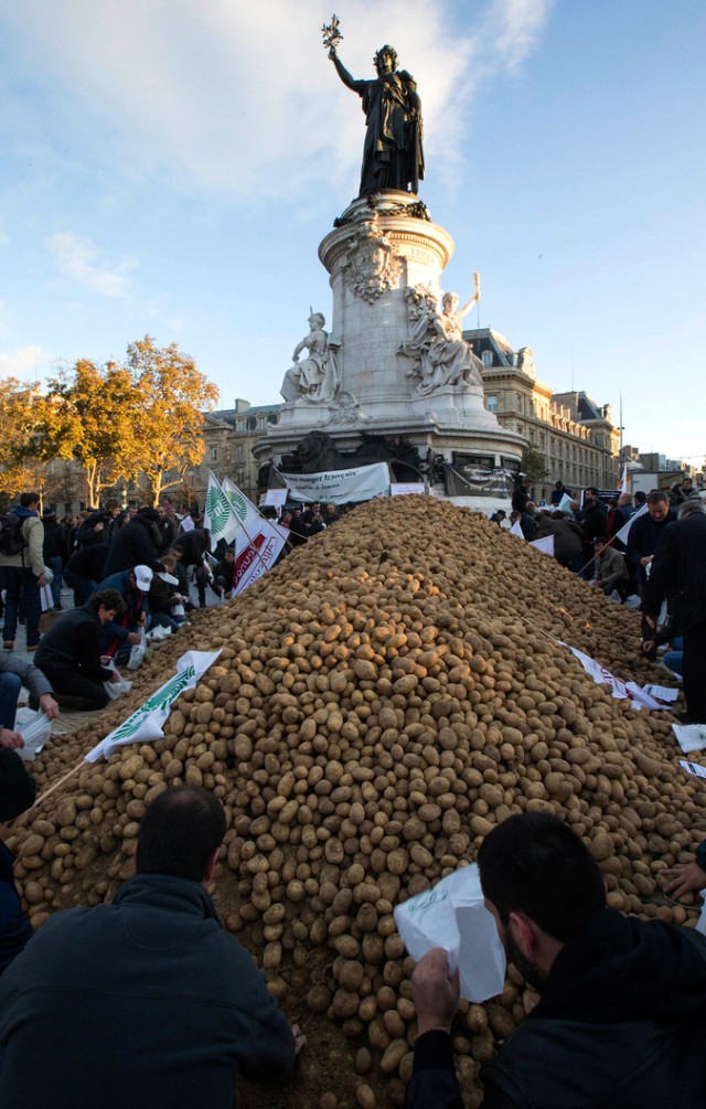 Невостребованный Россией картофель разбросан по Парижу и яблоки по Варшаве