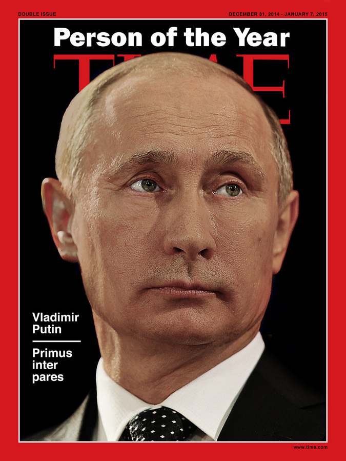 В сеть утекла обложка декабрьского номера журнала Time. Этот номер примечателен тем, что в нем будет назван «человек года». На обложке номера изображен президент России Владимир Путин с характерным заголовком «Primus inter pares» (лат. «первый среди равных»)