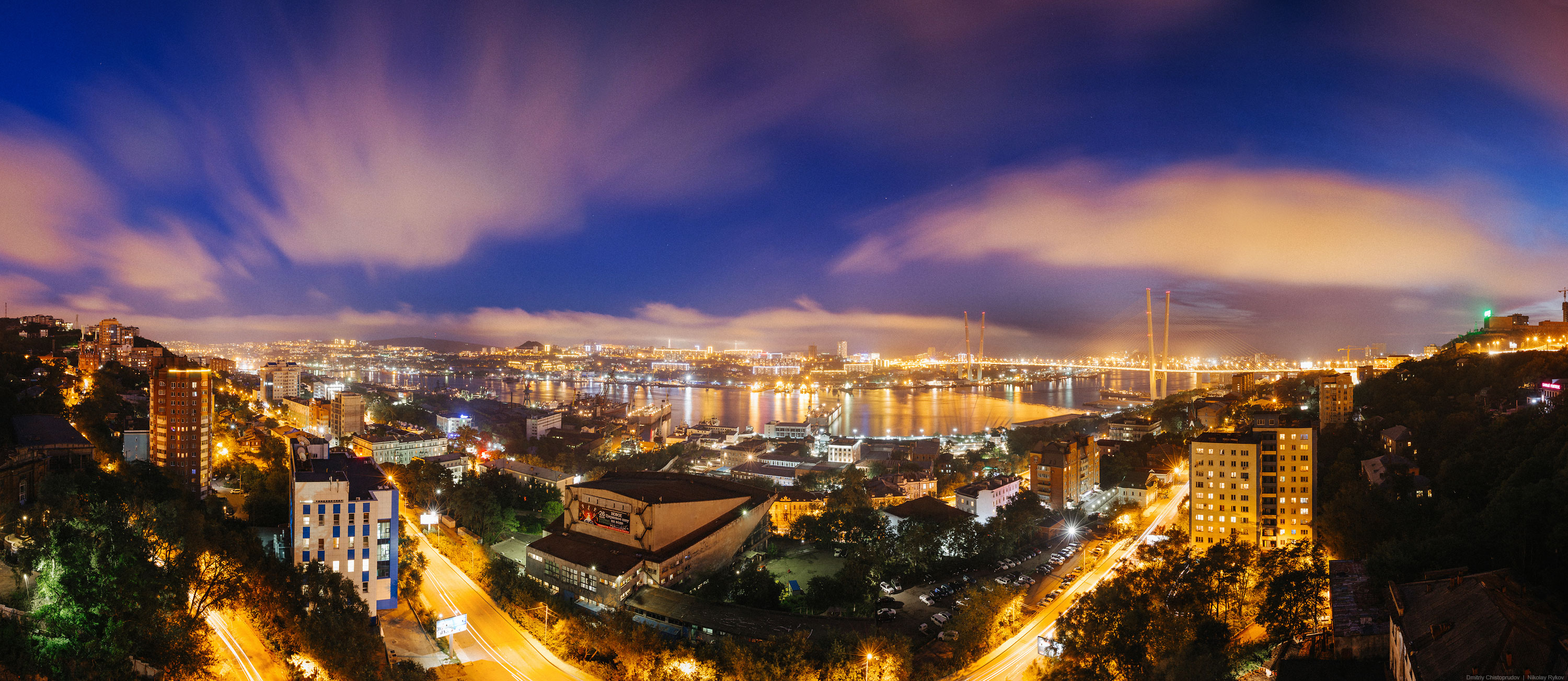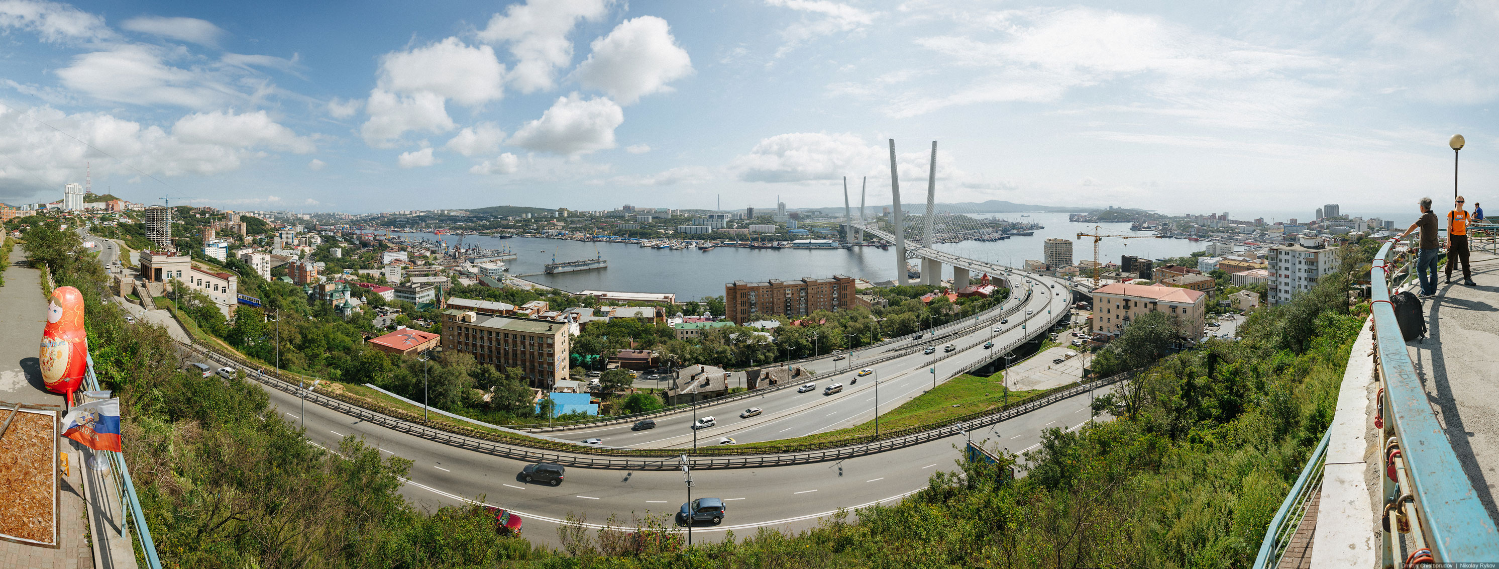 Если в рядовом городе России для того, чтобы сделать высотные кадры, нужно лезть на крыши и что-то согласовывать (или взламывать, тут кому что проще), то во Владивостоке нужно только знать нужные тропинки, дорожки и съезды. Кликабельно, 2 984 х 1 132 px.