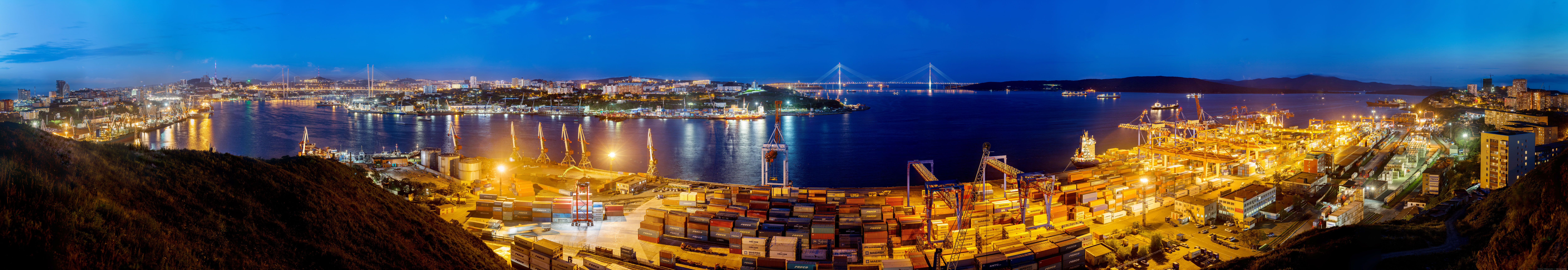 Большая панорама контейнерного терминала и всего Владивостока с Крестовой горы. Кликабельно, 10 000 х 1 720 px.