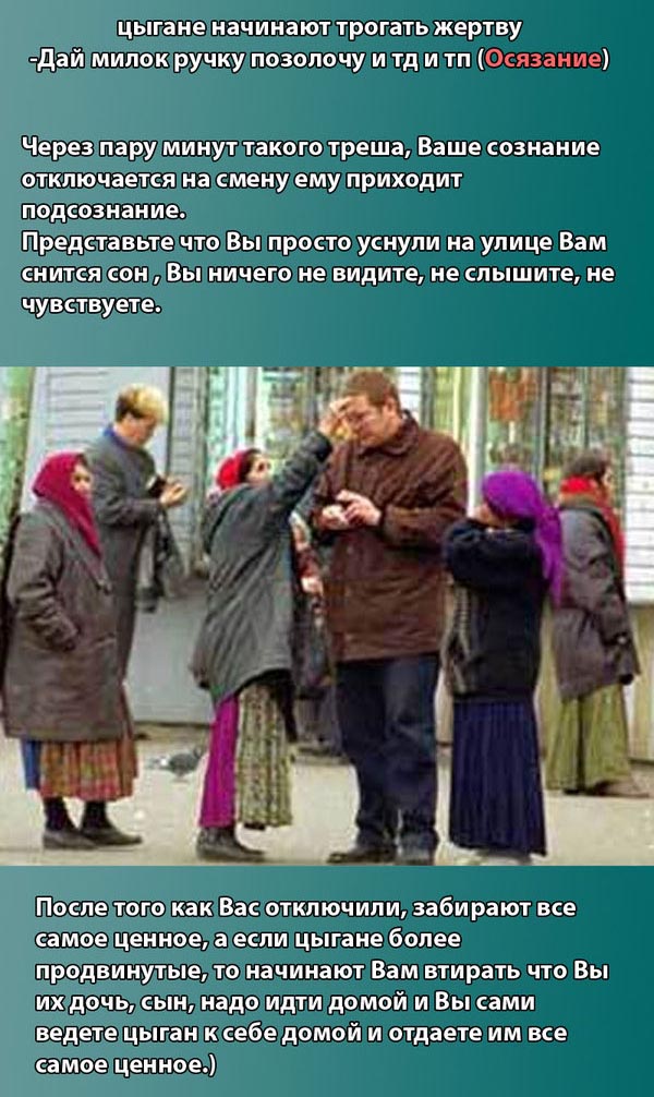 Как цыгане вводят человека в состояние транса (6 фото) 21/01/2015 22:34 Все мы слышали истории о том, как цыгане вводили человека в транс и забирали у него ценные вещи. Однако никто никогда не говорил нам о том, как именно они вводили людей в состояние транса. источникпока пост писал - питик пропал и лошадь Главная / Статьи +5 Admin 19 2 593