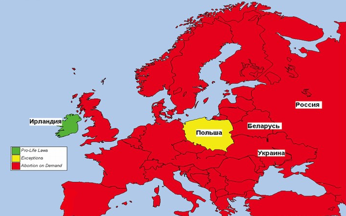 Кстати, в Европе только две страны жестко выступили против абортов: в Польше просто полный запрет, в Ирландии могут провести только по медицинским показаниям.