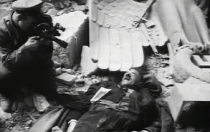 Ну или не так было. Вообще есть несколько вариантов "правды" о смерти Гитлера. На фото кадр из хроники, где он как бы лежит с дыркой во лбу, а советские солдаты его рассматривают. Но вроде бы тело фюрера после его самоубийства сожгли в саду канцелярии, где они были потом найдены, перезахоронены, потом выкопаны, сожжены и пепел развеян. А еще многие источники утверждают, что Гитлер не застрелился, а отравился. Иногда пишут, что он одновременно раскусил ампулу с ядом и сделал выстрел себе в голову. Путаницы добавляет тот факт, что проведенная в 2009 году экспертиза черепа Гитлера, который хранился в СССР, показала, что это вообще череп 40-летней женщины.