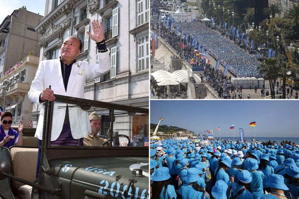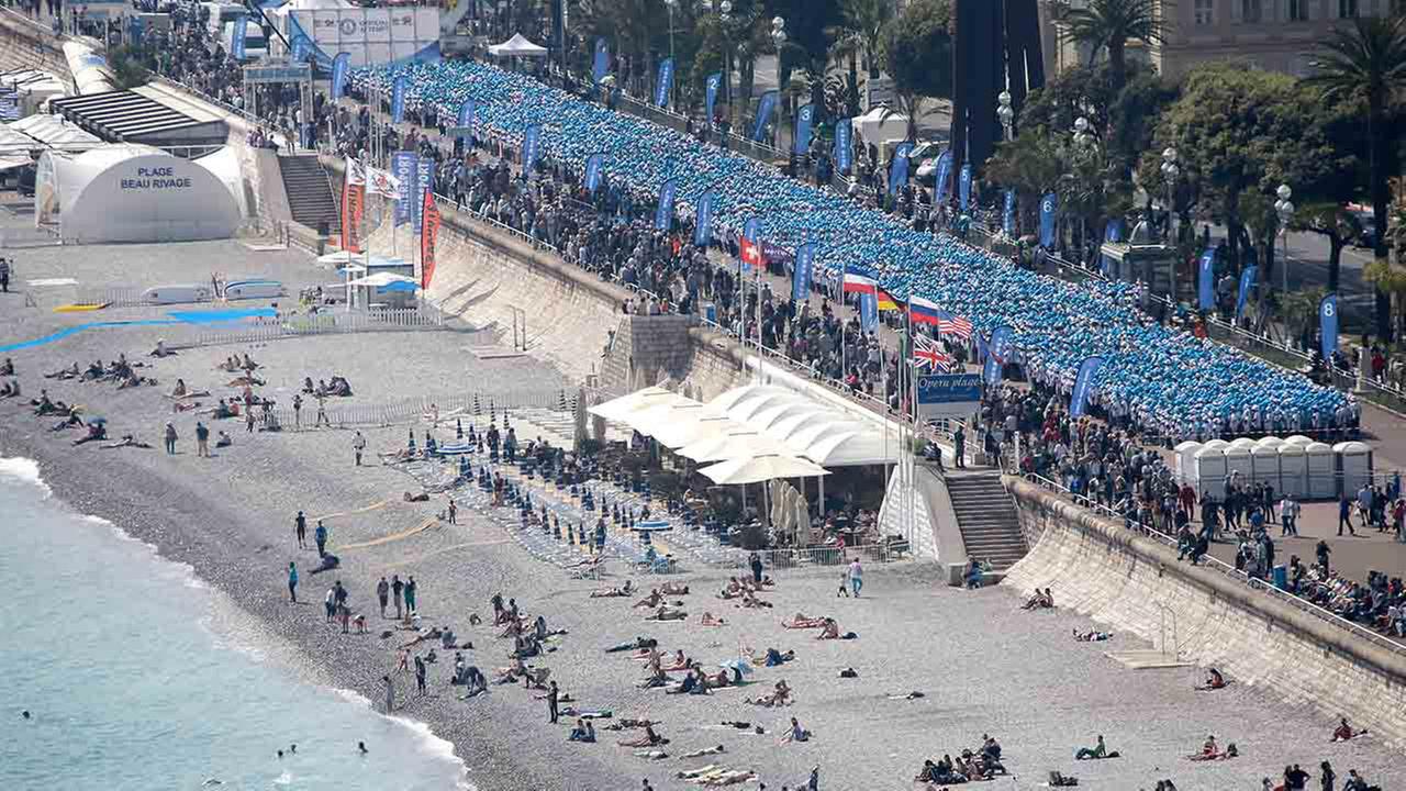 Миллиардер заказал 147 автобусов, чтобы привезти китайских туристов в Ниццу, где они на знаменитой набережной Променад Англез установили рекорд Гиннесса, выстроившись в самую длинную фразу.