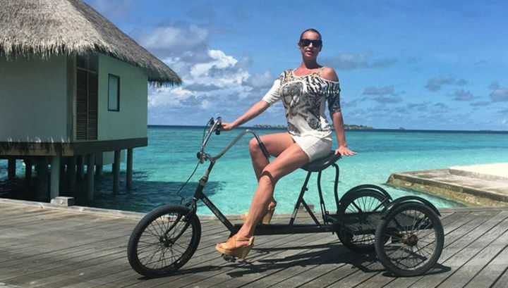 Балерина Анастасия Волочкова во время отдыха на Мальдивах врезалась в пальму, пытаясь освоить езду на трехколесном велосипеде. Об этом артистка сообщила в своем Instagram.