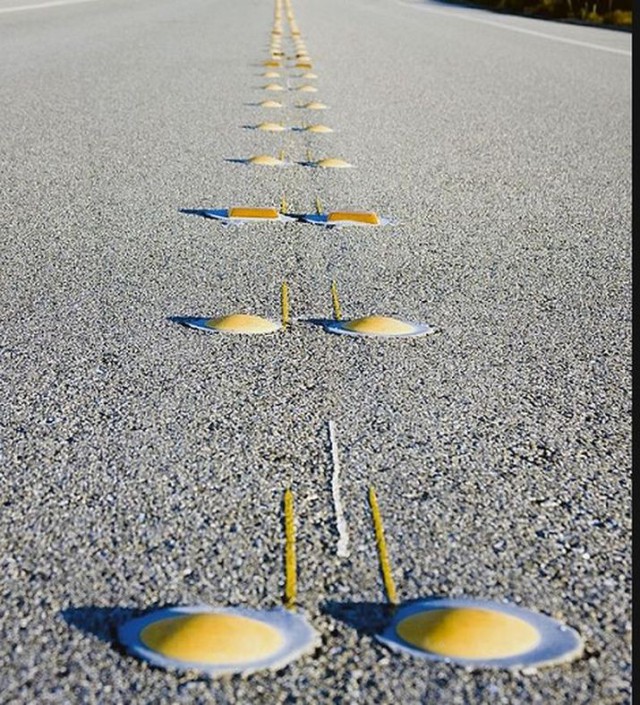 Есть и другие простые, но очень нужные изобретения. Так называемые Botts’ Dots («точки Боттса») позволяют не только разбудить водителя, наехавшего на них, но еще и помогают ему оставаться в пределах своей полосы движения даже во условиях плохой видимости. Покрыты «точки Боттса» специальной светоотражающей краской.